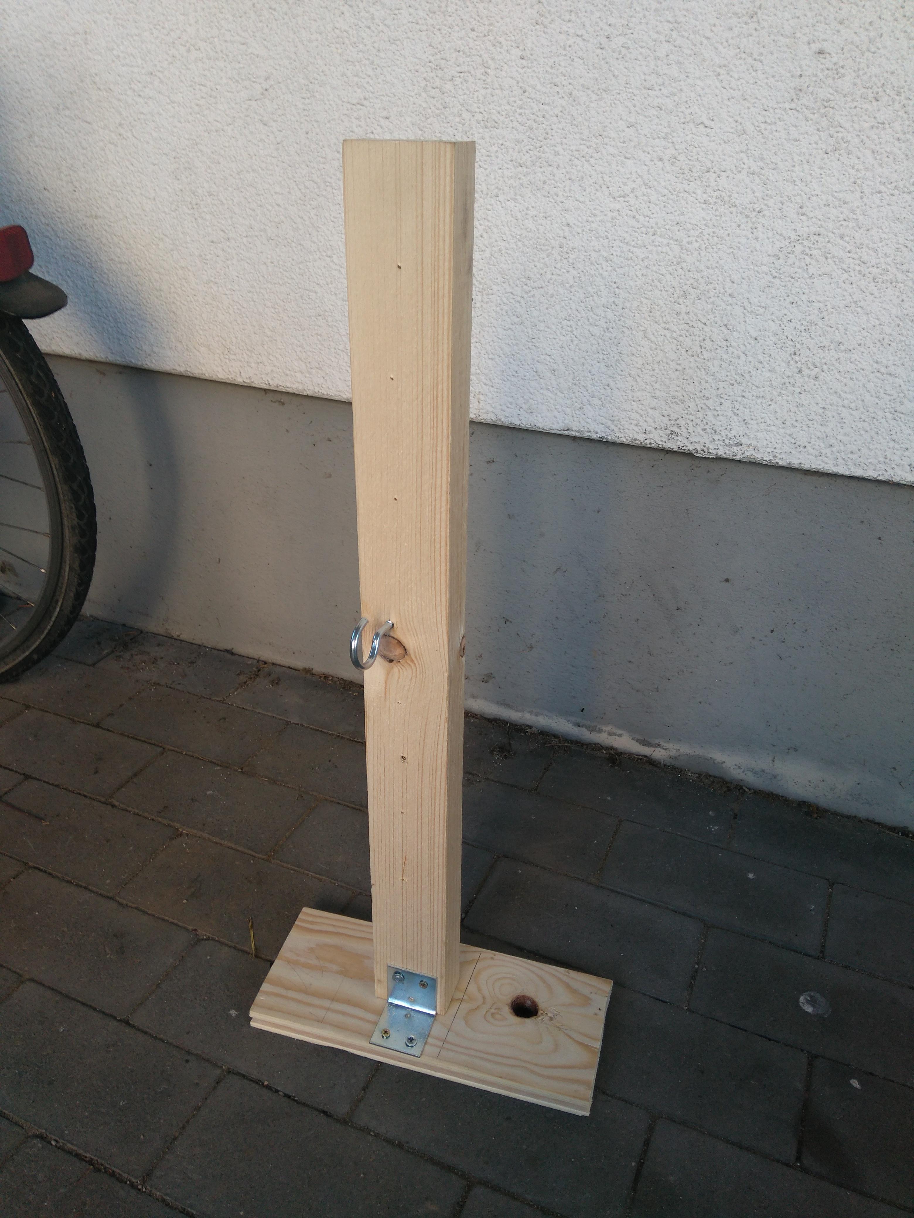 Einen Winkel, einen Schraubhaken und Holzreste sowie ein paar Schrauben habe ich verwendet.